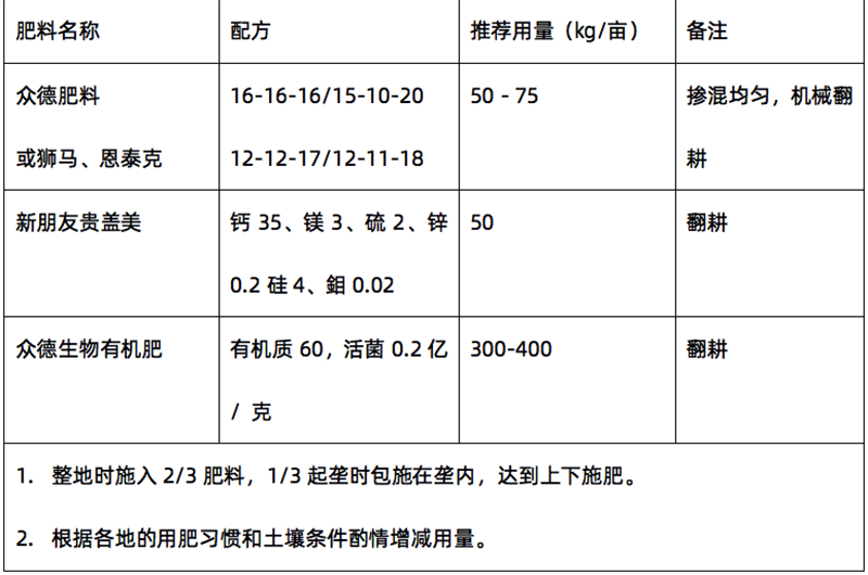 ?。?)推薦施肥套餐(根據(jù)目標產量、地域、品種、地力等適當調整)